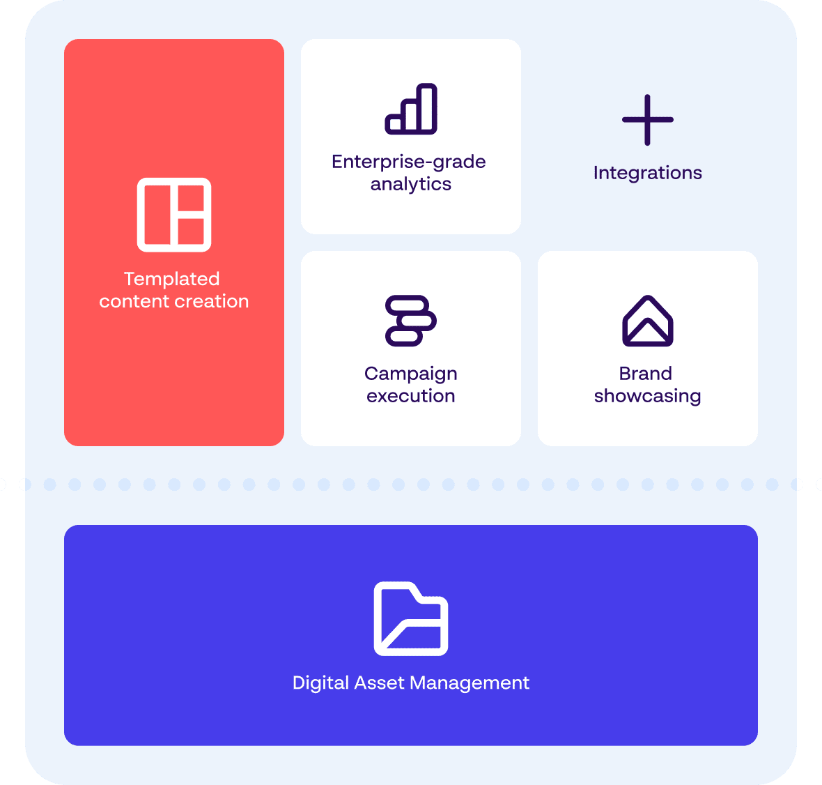 Your all‑in‑one content command centre – digital asset storage, user-friendly design templates, and content distribution.